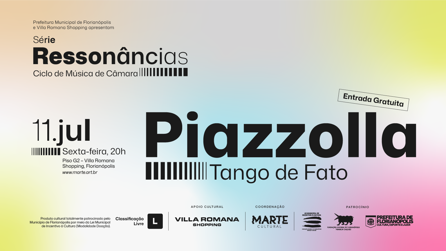 Série Ressonâncias | Piazzolla: Tango de Fato Em julho, concerto da Série Ressonâncias apresenta a obra de ... 11 jul 20:00 Piso G2 do Villa Romana ShoppingPiso G2 do Villa Romana Shopping, Av. Me. Benvenuta, 687 - Santa Mônica, Florianópolis
