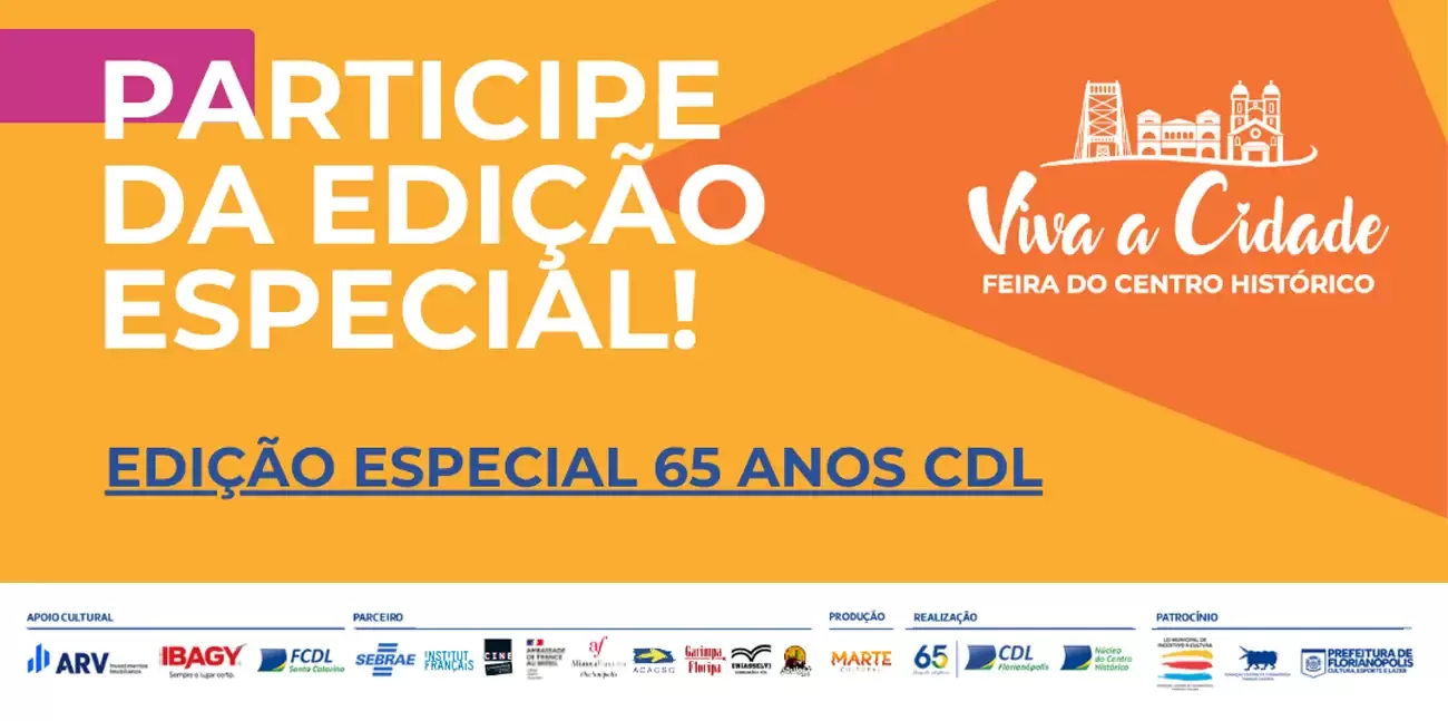 Feira Viva Cidade – Edição Especial CDL 65 Anos No sábado, 26 de julho, a Feira Viva Cidade realiza ... 26 jul 10:00 - 19:30 Centro Histórico de Florianópolis